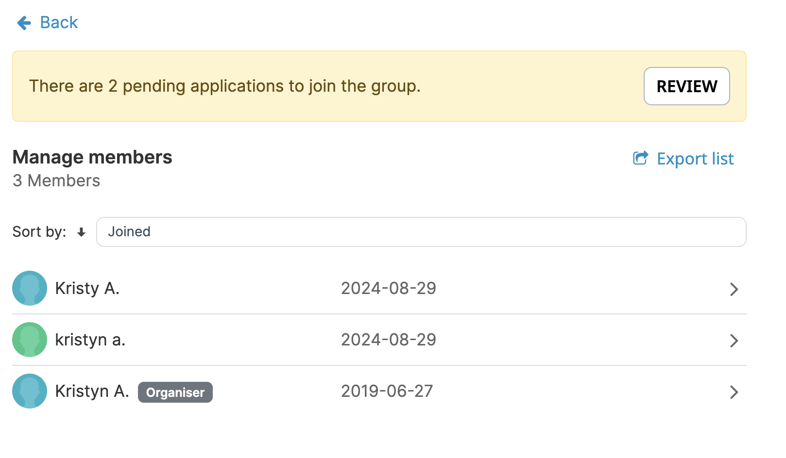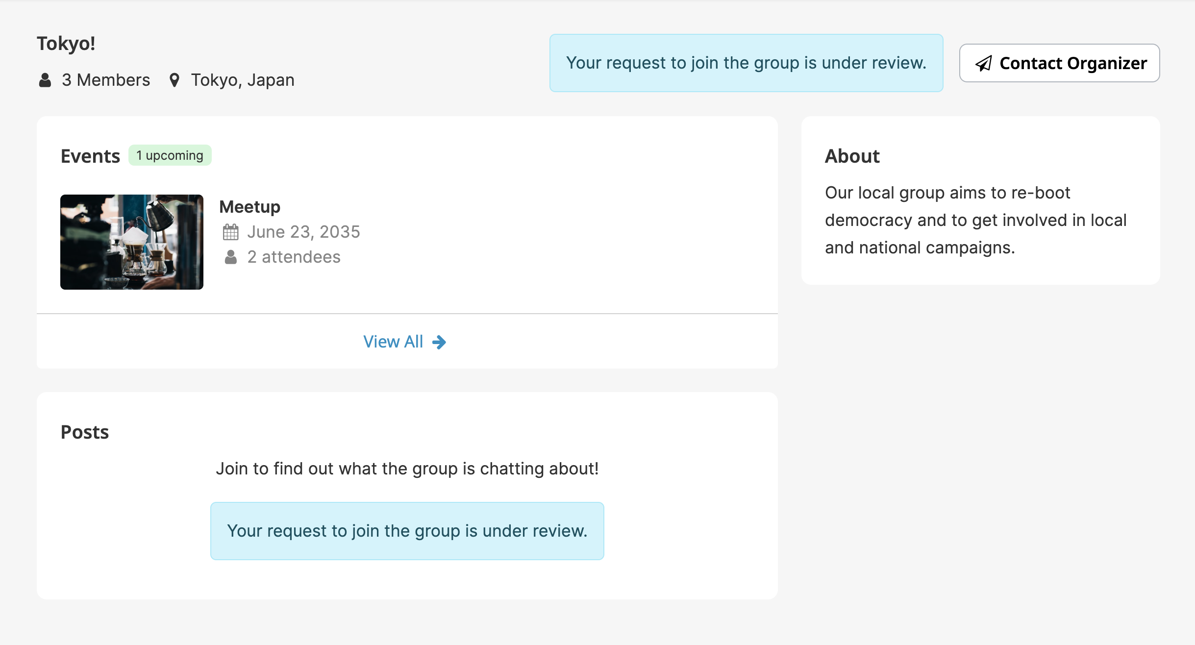 If the group organizer (or an admin) chooses, the group can be closed instead. Closed groups require prospective members to submit an application to join the group. The application is then sent to the group organizers for approval or rejection.